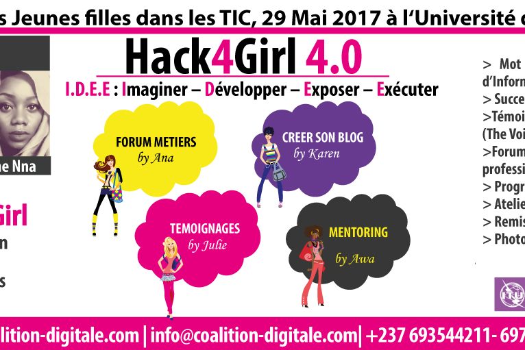 Retrouvez la team Coalition Digitale pour le Hack4Girl 2017 à l’Université Yaoundé ce 29 Mai dès 8H La Journée des Jeunes filles dans les TIC, 29 Mai 2017 à l‘Université…